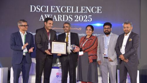 The award was presented by Shri Navin Kumar Singh, National Cybersecurity Coordinator of India, during the DSCI Annual Information Security Summit (AISS) 2025 in New Delhi.